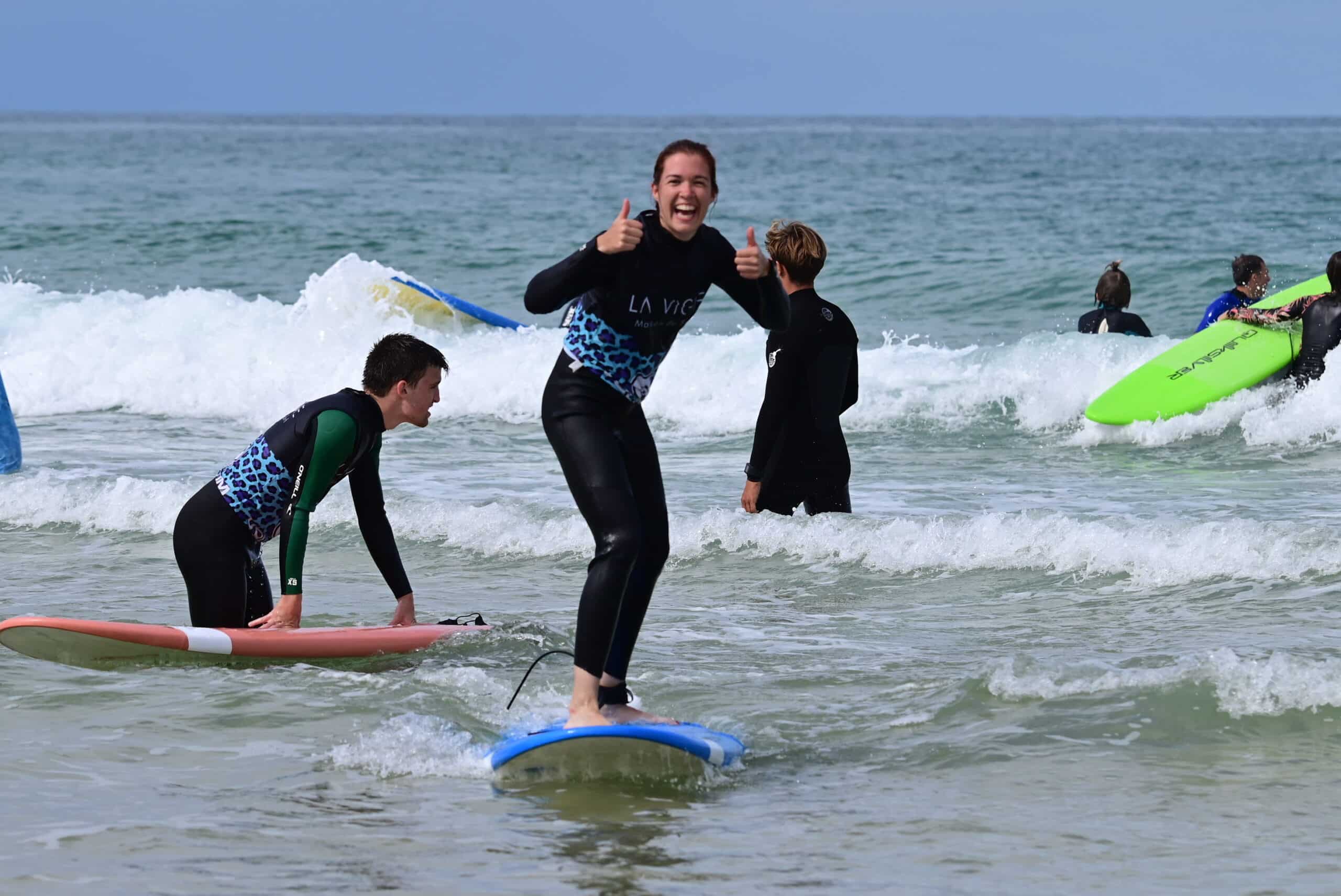 Depuis 1995, La Vigie accompagne les jeunes surfeurs en herbe dans leur découverte des vagues de Biscarrosse Plage. Notre école de surf à Biscarrosse s’est spécialisée dans l’apprentissage adapté aux enfants, proposant une pédagogie ludique et sécurisée qui respecte le rythme de chacun. Vous pouvez également consulter nos tarifs et modalités de réservation pour planifier le stage idéal.